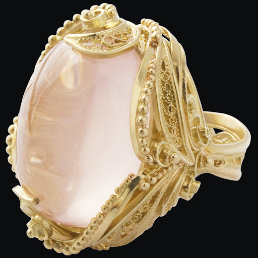 Самым красивым получилось кольцо с розовым кварцем в лимонно-желтом золоте, названное «PERASKEVA». Именно в честь него и был назван бренд.
