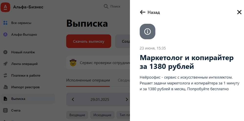 Даже Альфа-Банк уже предлагает услугу маркетолога и копирайтера