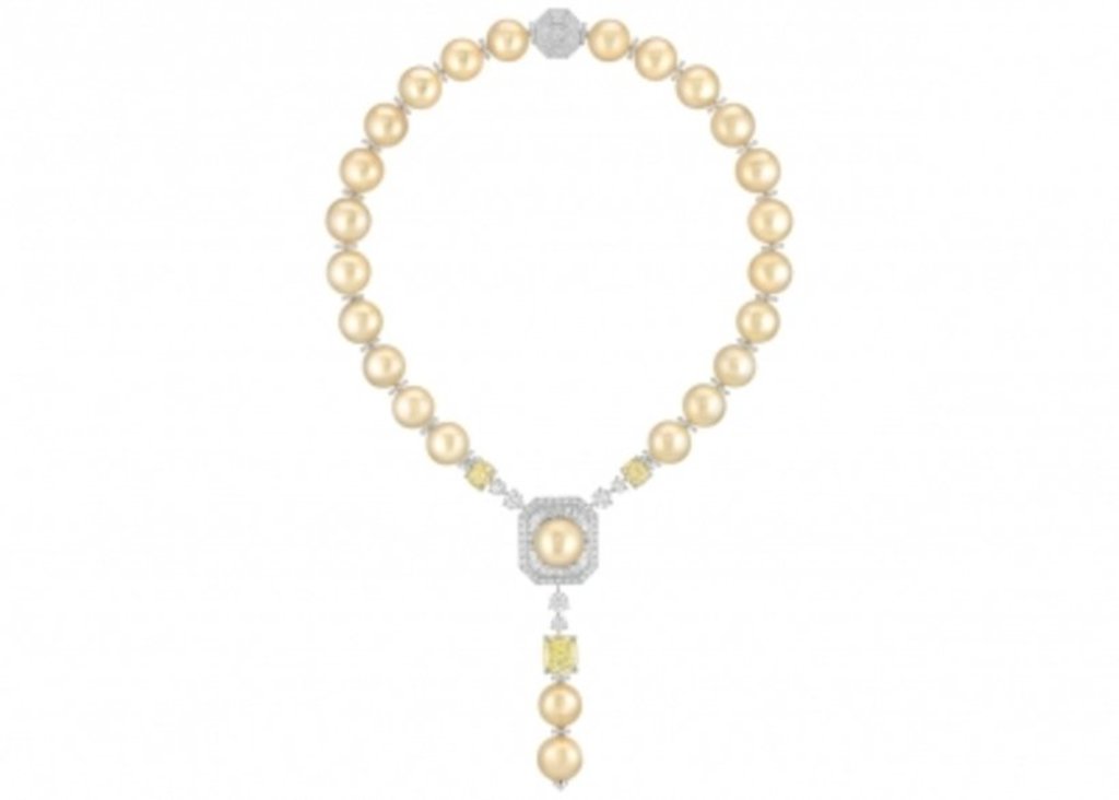 Baroque – это не вариации на тему барочного жемчуга, как можно было бы заключить из названия линии, а куда более широкая ювелирная импровизация на тему стиля барокко. С византийскими мотивами и фирменным для Chanel Львом. Разумеется, сам барочный жемчуг тут тоже присутствует (так, он стал центральным элементом колье и серег Perles Baroque), но не главенствует. Главное же в этой части коллекции – ее цветовое решение с преобладанием золотых оттенков. И не только золотого жемчуга, но и желтых бриллиантов, ставших и элементами паве, и составными элементами узоров, и смысловыми акцентами. Так, особо выделяется колье Perles Royales – нить золотого жемчуга с центральным элементом из платины с бесцветными бриллиантами и крупной жемчужиной и тремя акцентирующими элементами с желтыми бриллиантами в 3,4; 3,6 и 10 карат.