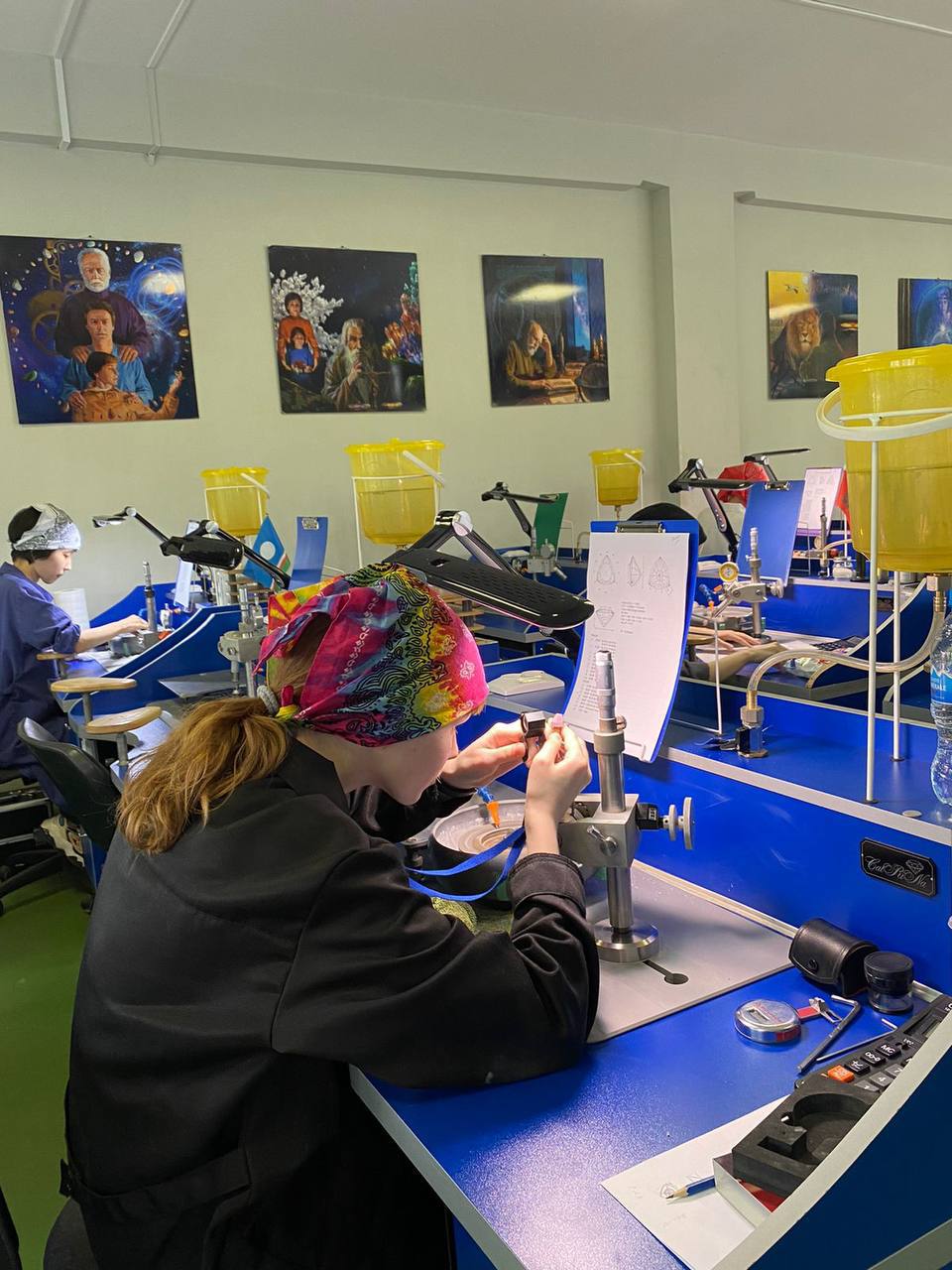 Моё знакомство с ювелирным делом началось в колледже имени Карла Фаберже, где я поступила на специальность “дизайнер в ювелирной промышленности”. Мне всегда хотелось больше практики, поэтому я самостоятельно искала дополнительные возможности — посещала курсы, в том числе по работе с титаном, который быстро стал моим любимым материалом. Позже я приняла участие в чемпионате по огранке ювелирных вставок — и стала чемпионом России. С тех пор камни заняли особое место в моей жизни. Сейчас я продолжаю обучение уже в высшем учебном заведении на геологоразведочном факультете в МГРИ, где изучаю обработку камней.