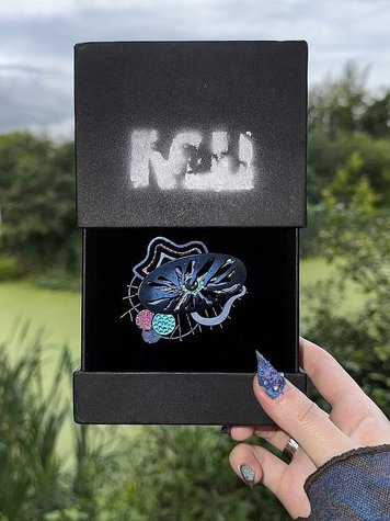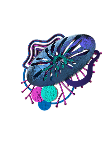 | Концепция | Брошь объединяет легкость, прочность и органические формы. Анодирование придает титану насыщенные оттенки, подчеркивая живой и технологичный образ, вдохновленный структурами природы. |