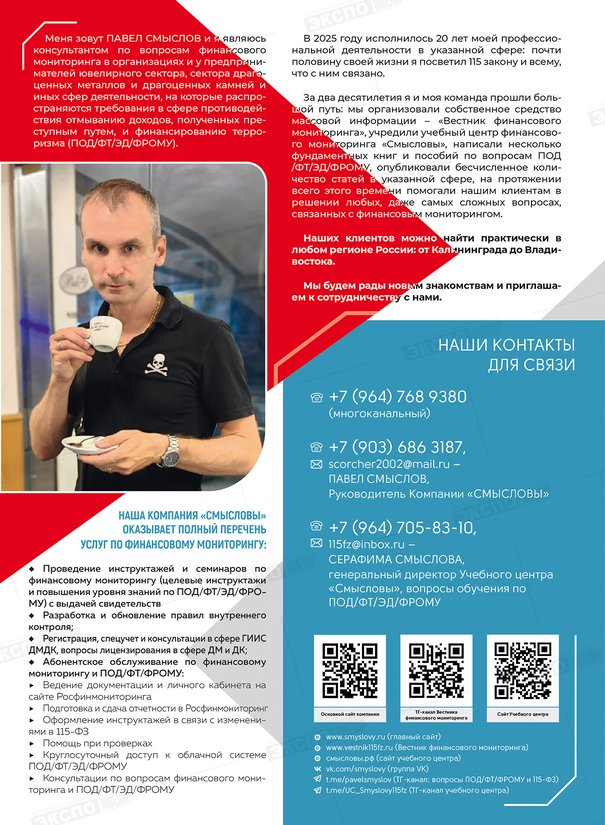 Правовой консалтинг ювелиров и ломбардов, правила внутреннего контроля по ПОД/ФТ, обучение в сфере финансового мониторинга и ПОД/ФТ, сдача отчетности в Росфинмониторинг и решение любых других вопросов.