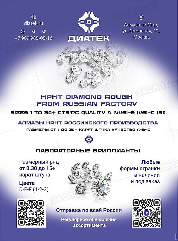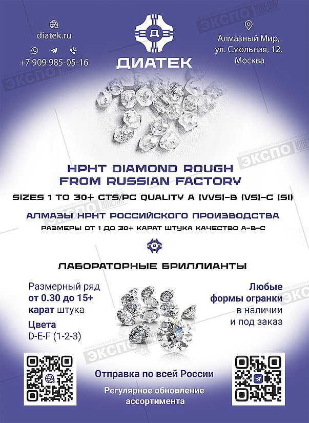 Наша компания Диатек (Мелвис АО) поставила несколько мировых рекордов по росту крупнейших лабораторных алмазов в мире.