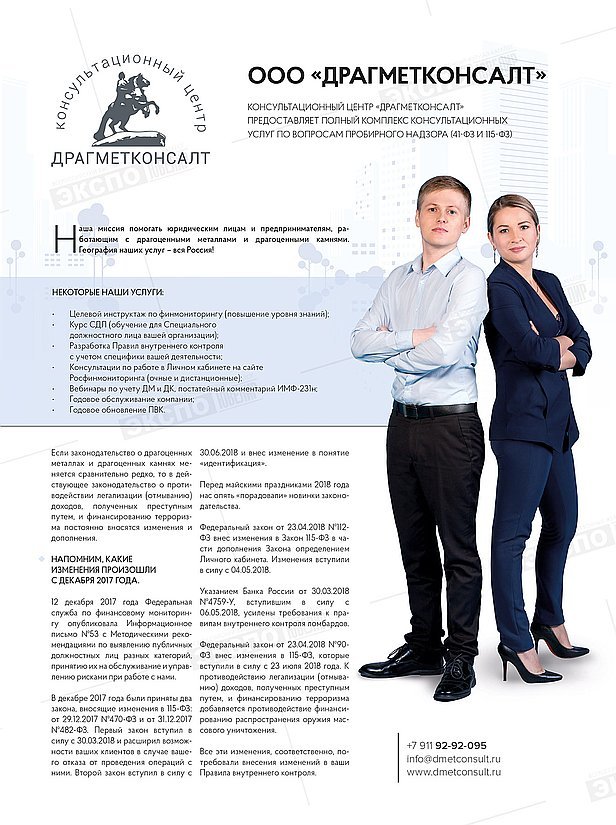 ДРАГМЕТКОНСАЛТ помогает юридическим лицам и предпринимателям, работающим с драгоценными металлами и драгоценными камнями:
