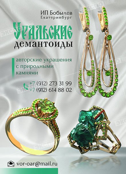 Изготовление изделий из золота и серебра с уральскими природными камнями - демантоидом, изумрудом, бериллом, александритом.