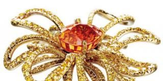 Осенние украшения — матовым теплом желтого и розового золота, сверканием желтых бриллиантов, кварцев, топазов, цитринов, таинственным свечением огненных опалов, золотистого жемчуга и янтаря — вызывают в памяти это короткое, но многократно воспетое поэтами на всех языках время.