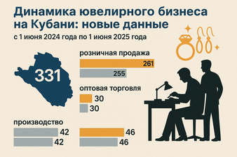 С 1 июня 2024 года по 1 июня 2025 года в Краснодарском крае количество ювелирных компаний сократилось на 1,7%. Сейчас в регионе работает 331 субъект …