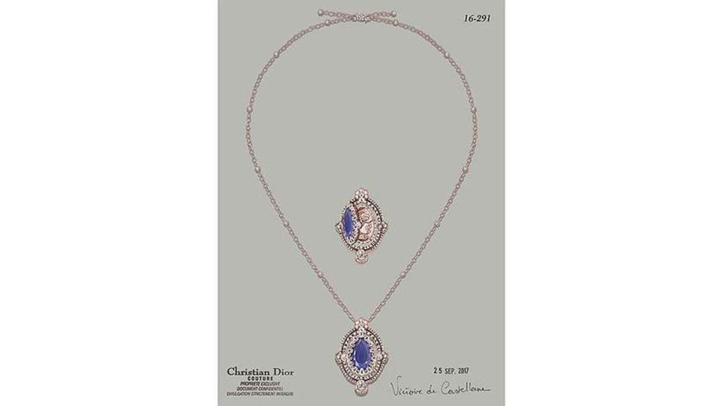 Коллекция Dior a Versailles — это трилогия, и Pieces Secretes — ее завершающая часть. Увлекательнейшее ювелирное путешествие по королевской резиденции Dior начала со знаменитых интерьеров в стиле рококо (Dior a Versailles, 2016). Виктуар де Кастеллан представила ночной Версаль при свете свечей, где за разговорами гостей слышался звон серебра о фарфор. Дизайнер играла с идеей исторических украшений — на первый план вышли розовое золото и черненое серебро. Следующая глава — версальские сады (Cote Jardins, 2016). Изумруды, бриллианты, сапфиры и турмалины принимали формы деревьев, разлетались брызгами фонтанов и пели оду совершенной геометрии главного королевского садовника Андре Ленотра.