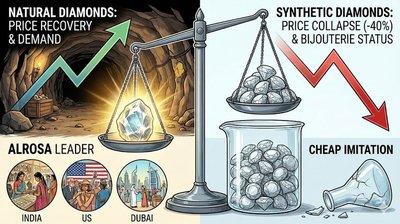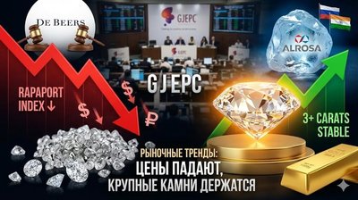 Рыночные тренды: Rapaport падает, крупные камни держат цену, а De Beers насыщает рынок
