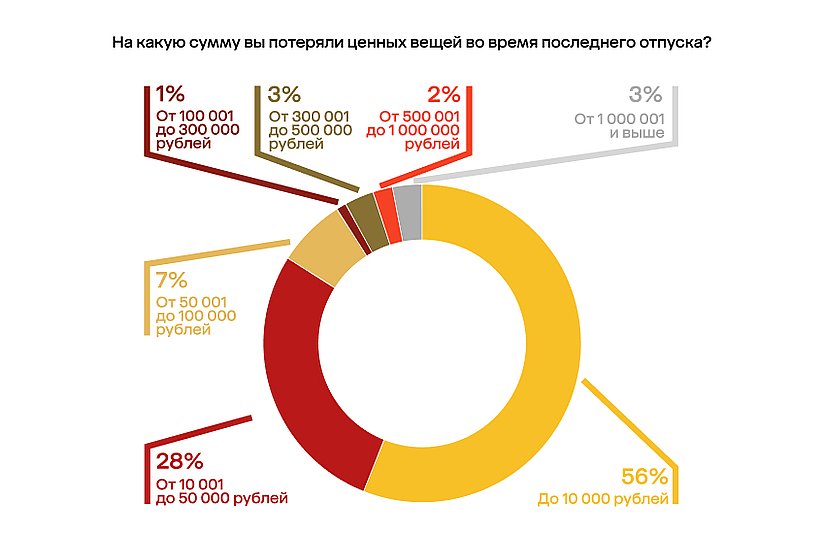 Неудивительно, что при таком количестве ценностей многие сталкиваются с потерями: 45% опрошенных что-то забывали или теряли. Чаще всего стоимость таких находок не превышает 50 000 рублей, но у 3% респондентов общая стоимость потерянного превысила миллион.