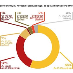 Ситуация с кражами выглядит иначе: они случаются в три раза реже (17%), но ущерб от них гораздо выше. У 19% пострадавших похитили вещи на сумму более миллиона рублей.