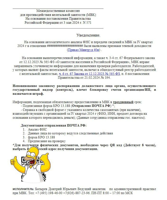 ФНС России предупреждает в настоящее время участились случаи получения налогоплательщиками уведомлений от Межведомственной комиссии для противодействия нелегальной занятости, которые являются фейковыми.