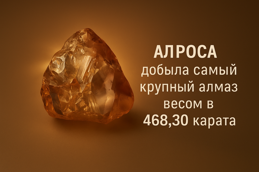 Российская алмазодобывающая компания АЛРОСА сообщила об уникальной находке: из недр Якутии был извлечен самый крупный алмаз ювелирного качества за всю историю алмазодобычи в России. Кристалл фантазийного янтарного цвета обладает внушительным весом в 468,30 карата и размерами 56х54х22 миллиметра.