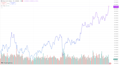Ралли драгоценных металлов: Серебро превысило $40 на фоне роста спроса