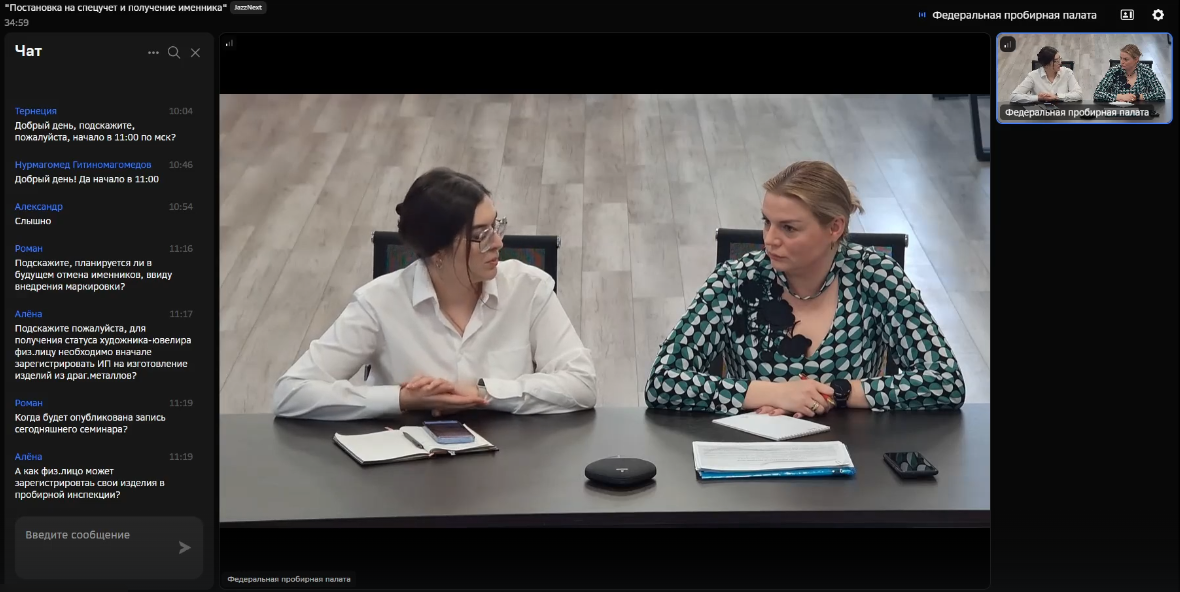 Для тех, кто не смог присоединиться к прямой трансляции, доступна официальная запись семинара на Rutube-канале Федеральной пробирной палаты: