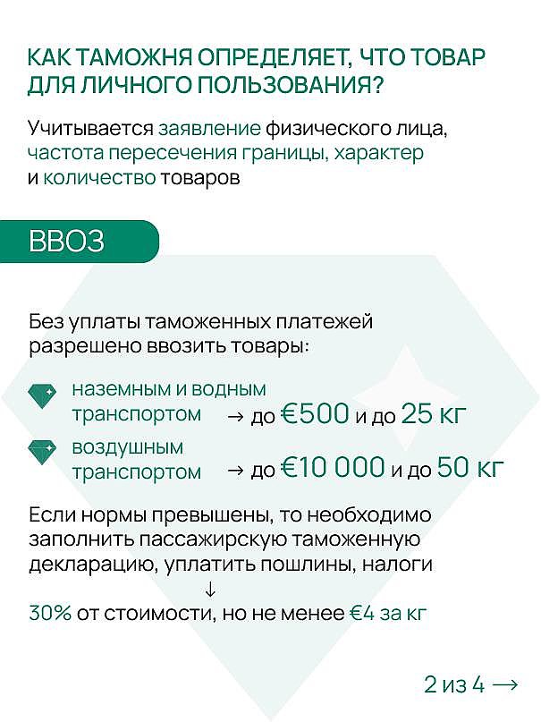 При въезде в Россию, если вы везёте драгоценности для личного пользования, важно учитывать их стоимость и вес. По правилам, беспошлинно можно ввезти товары: