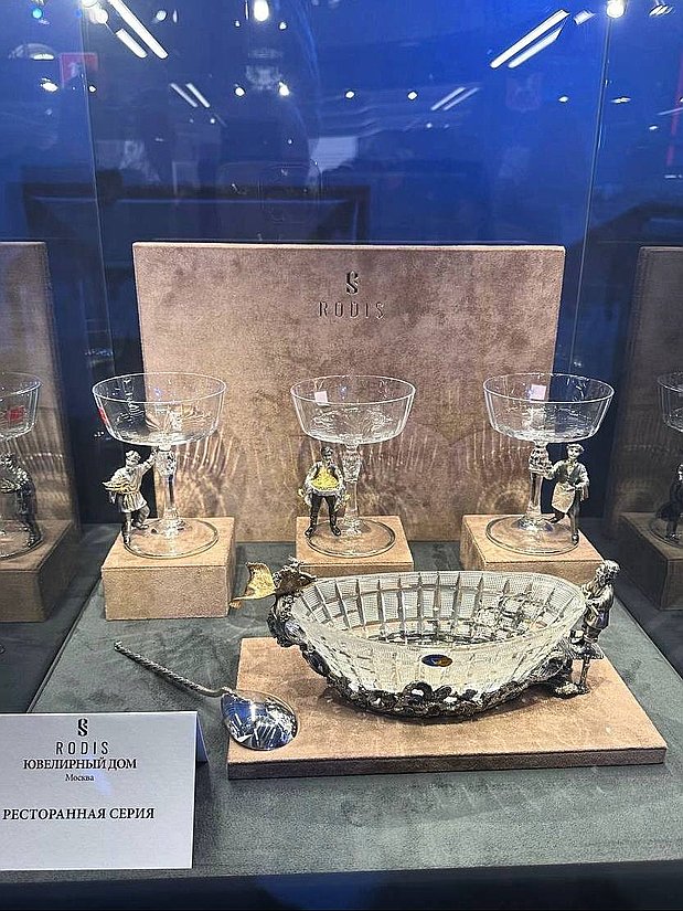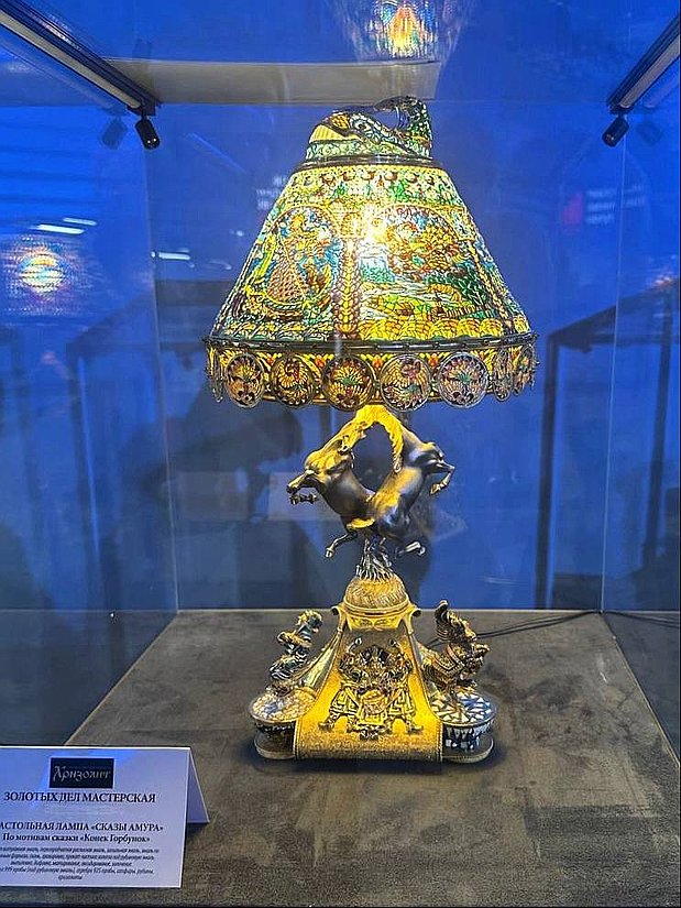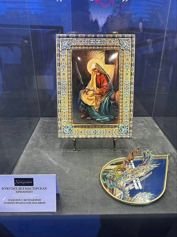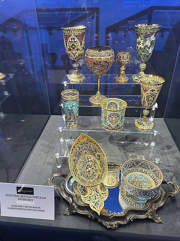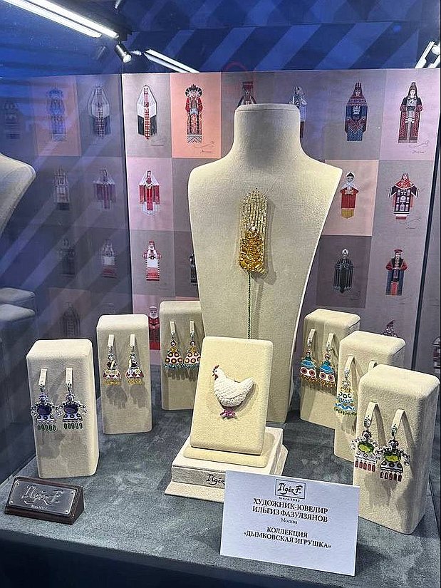 Экспозиция демонстрирует, как современные мастера переосмысливают богатое наследие прошлого. Среди экспонатов — не только украшения, но и культовые предметы для церковного и личного обихода, а также традиционная русская посуда. Каждое изделие — это отражение культурного кода России, вдохновленное образами русских сказок, народных костюмов и имперской эстетики.