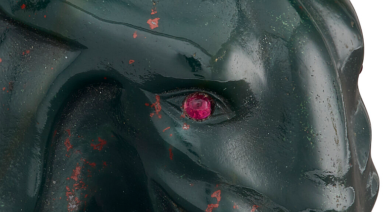 На этот раз покупателям предлагается приобрести камнерезную фигурку слона из гелиотропа («кровавой яшмы») с рубиновыми глазами. Эстимейт лота составляет от 20 до 30 тысяч долларов. Аукционный дом подкрепляет подлинность изделия провенансом: сообщается, что семья Айткен приобрела фигурку в 1960-х годах у «приличного антиквара» в Нью-Йорке.