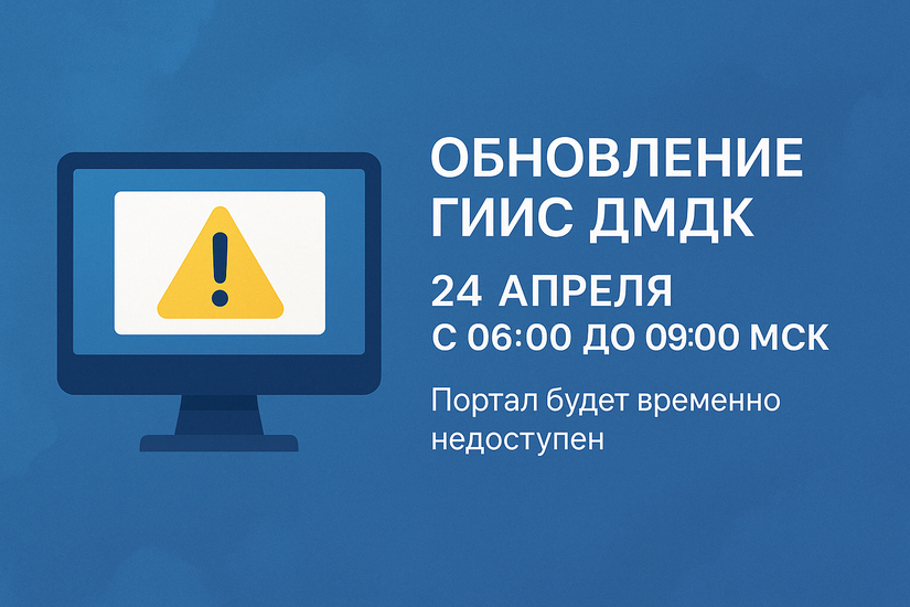 В четверг, 24 апреля 2025 года, с 06:00 до 09:00 по московскому времени, будет проведено обновление информационной системы ГИИС ДМДК до версии 5.2.5. В связи с этим доступ к порталу будет временно приостановлен.