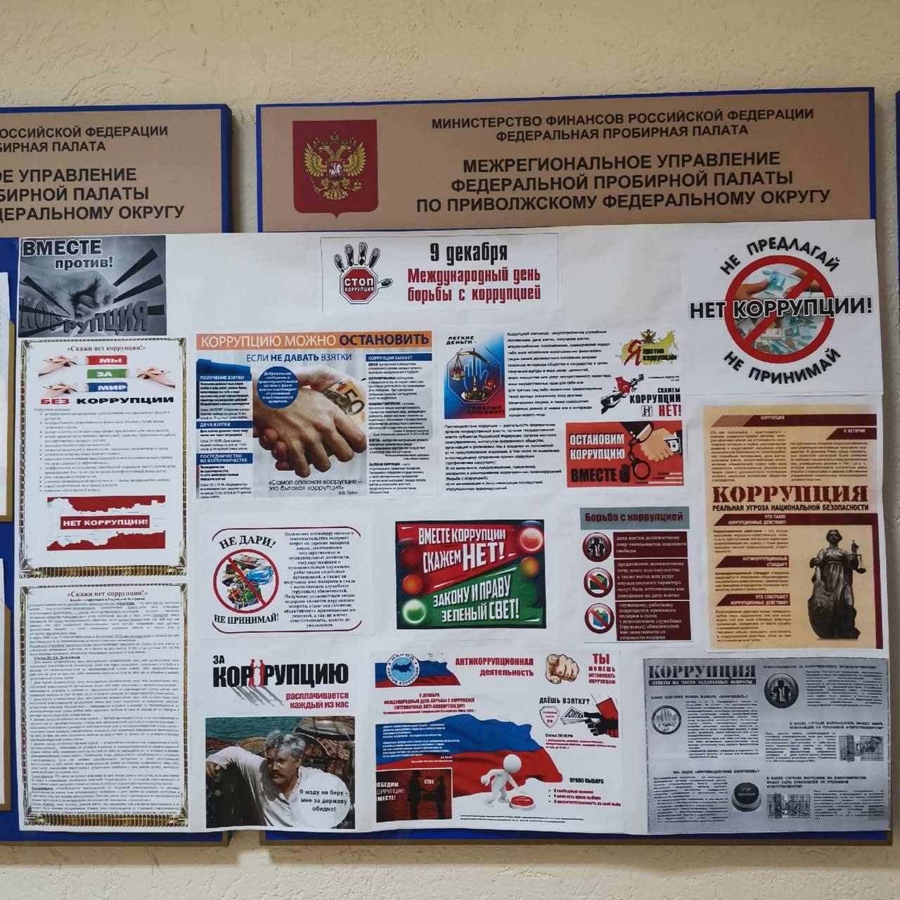 9 декабря, в рамках ежегодной антикоррупционной кампании, в подразделениях Межрегионального управления Федеральной пробирной палаты по Приволжскому федеральному округу состоялись просветительские акции.