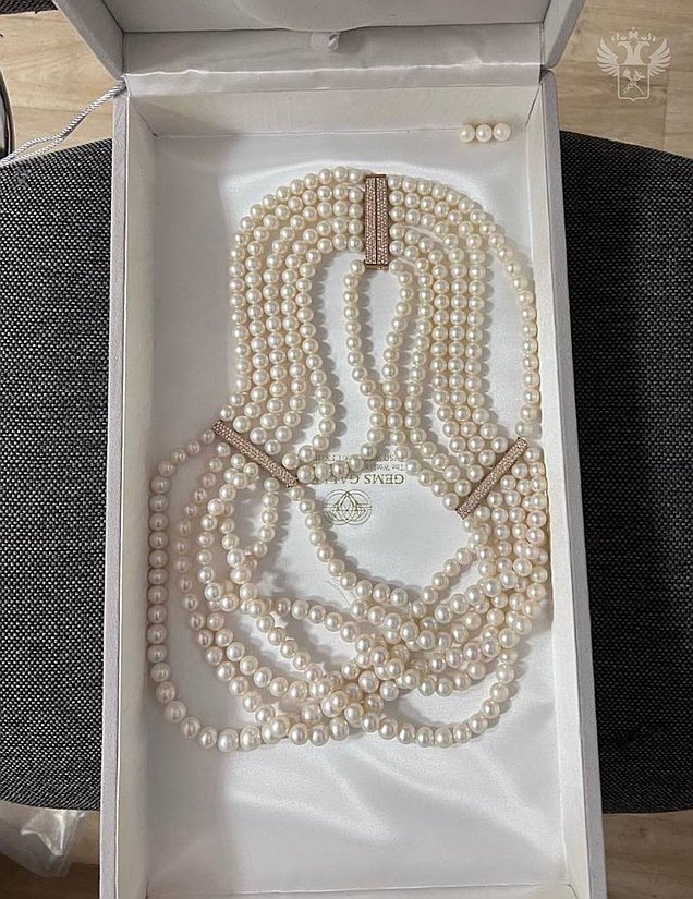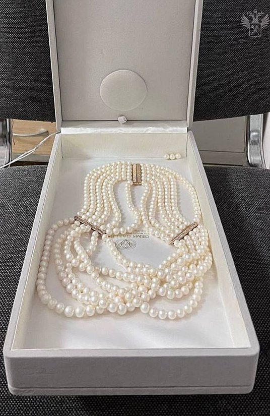 Экспертиза показала, что украшение весом около полукилограмма изготовлено из золота 750 пробы с вставками из бриллиантов и 443 культивированных жемчужин. Его рыночная стоимость может превышать 2,5 миллиона рублей.