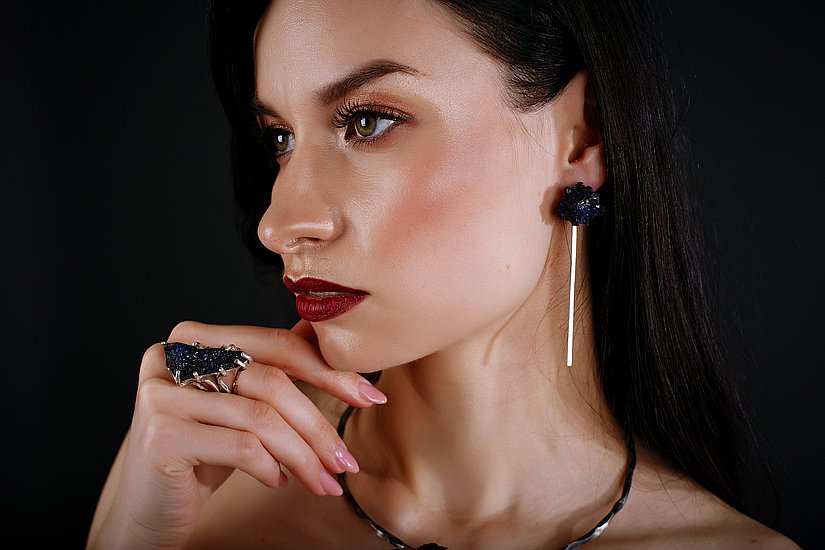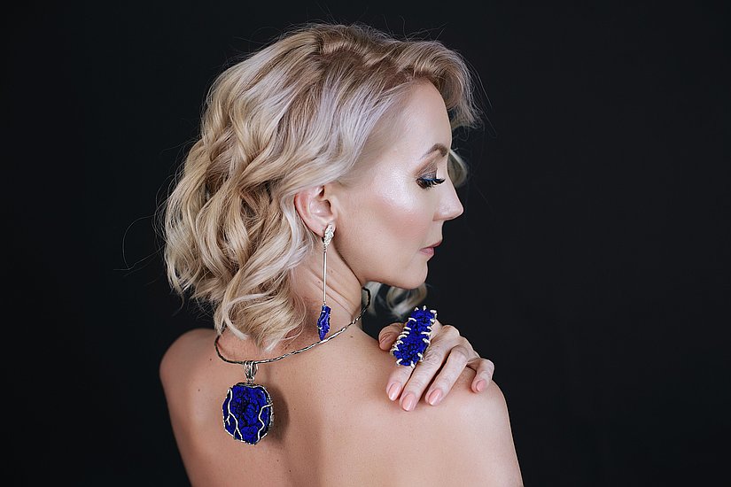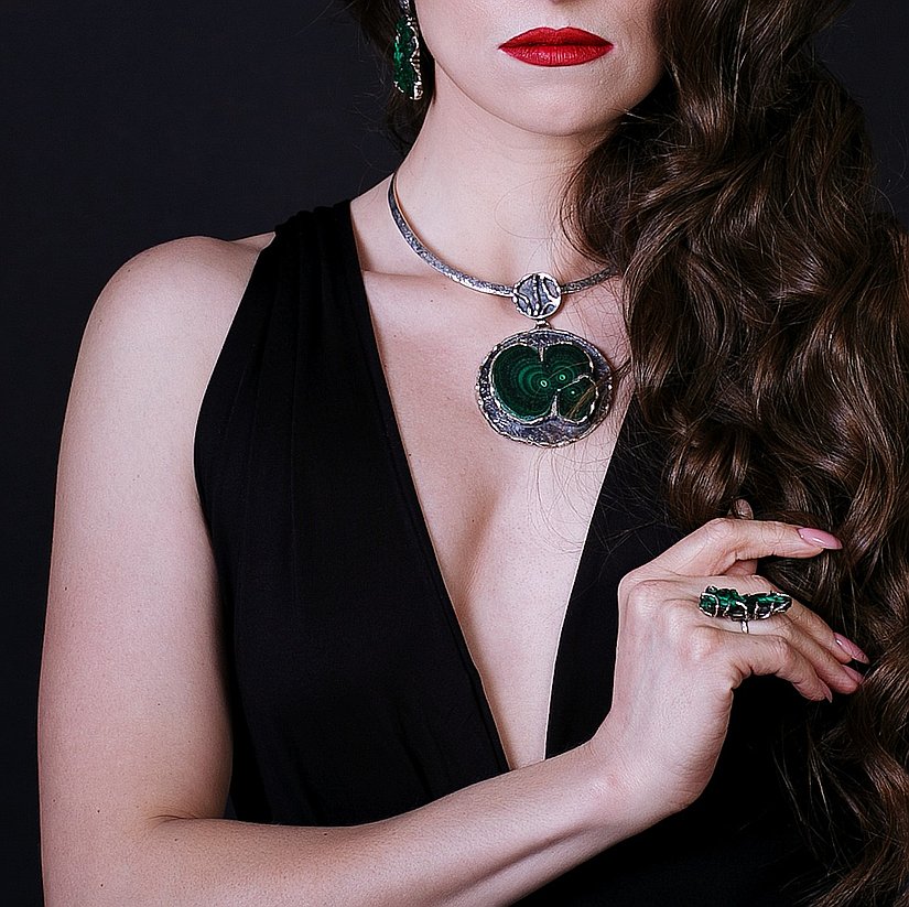 Вдохновение: Источником послужила природная форма и цвета самого минерала. Выпиловка служит «отсылки к памяти и силы своего рода».
