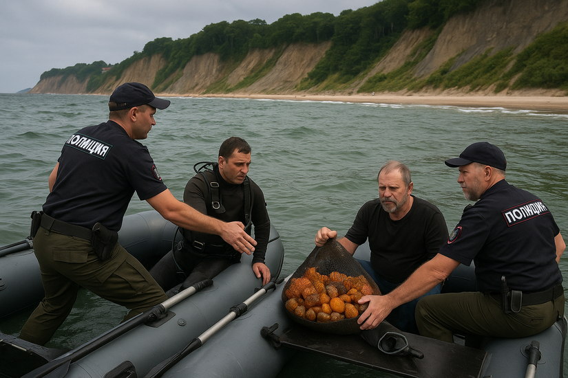 На днях в спокойных водах Балтики, неподалеку от Светлогорска, развернулась настоящая драма с янтарными браконьерами! Полицейские и сотрудники ФСБ поймали с поличным двух мужчин, которые, вооружившись водолазным снаряжением, пытались нажиться на незаконной добыче "солнечного камня".