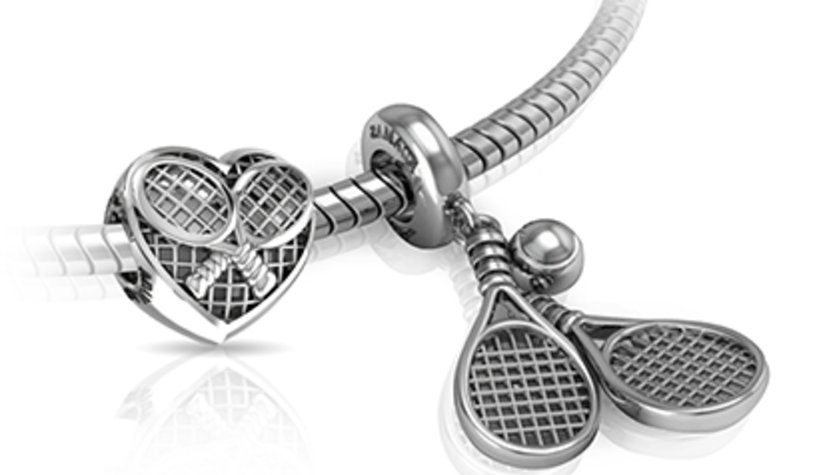 Все элементы коллекции ADAMAS Charm Tennis выполнены из серебра; шармы-бусины и шармы-подвески декорированы цветными стразами, эмалью, кристаллами Swarovski. Шармы-символы тенниса комбинируются со всеми типами браслет-снейк (bell-bracelets), представленными на российском рынке, и органично сочетаются со всеми элементами ADAMAS Charm (в базовой линейке представлены тематические коллекции A La Russe, Sacrament, Gold, Путешествия, Семейные ценности и другие). Стоимость шармов ADAMAS Charm Tennis — от 900 рублей.