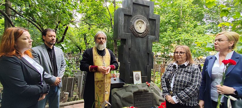 Тогда в памятном мероприятии, организованном Национальным коллекционным центром художественных изделий, его правопреемником сегодня является Фонд развития художественной промышленности и ювелирного искусства, приняли участие: представители Министерства Культуры РФ, Гохрана России, Пробирной палаты, Московской государственной Думы, ТПП РФ, Общества купцов и промышленников России, музейного и ювелирного сообществ, а также компании «Эстет», благодаря которой удалось реставрировать и восстановить могилу П. Овчинникова и его супруги Марфы.