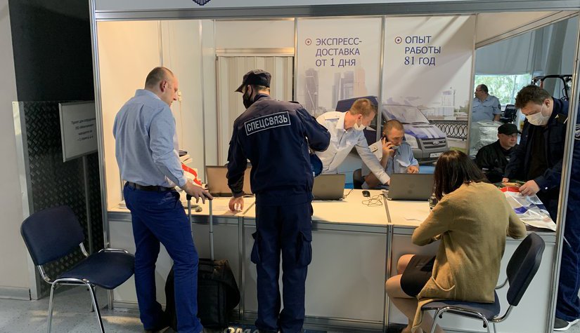 Для своих клиентов - экспонентов «JUNWEX Новый Русский Стиль» - Спецсвязь организовывала ночную охрану опечатанных стендов совместно с сотрудниками ЧОП «Альфа-Легион», а также предоставляла возможность сдать украшения и изделия на ночное хранение в бронированный автомобиль, которых находился внутри павильона за стендом Спецсвязи.