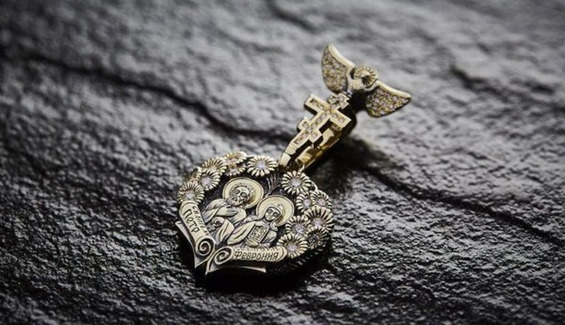 Специально ко Дню семьи, любви и верности художником-ювелиром Владимиром Михайловым был создан нательный образ святых - изображение Петра и Февронии в обрамлении ромашек - символа праздника. 8 июля в Музее-заповеднике Царицыно эти иконы-подвески были вручены парам, прожившим в браке 50 и более лет.