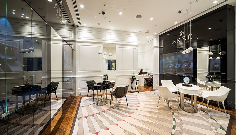 Теперь бутик марки, включенный одним из самых авторитетных в мире веб-ресурсов по прогнозированию тенденций в мире моды и дизайна WGSN в список 10 лучших концептуальных бутиков Москвы, гостеприимно распахнул свои двери на втором этаже Галерей. Несмотря на смену «локации», украшения всех коллекций ARNE ждут вас в привычном изысканном интерьере с черно-белой лаконичностью, обилием зеркал, гладкими поверхностями, камерной атмосферой и профессиональным индивидуальным обслуживанием, который эксперты WGSN сравнили с роскошным закрытым «клубом для посвященных».