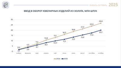 Ввод серебряных украшений в оборот вырос на 2,6%: Итоги 10 месяцев 2025 года